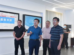 中國紡織工業聯合會會長孫瑞哲(左一)一行在視察,指導企業發展