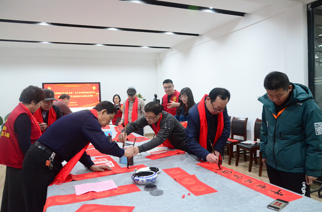 在書法家的筆下,一副副春聯熠熠生輝,傳遞著溫馨暖意,寄托了人們對新年和未來的美好祝福與憧憬。退伍軍人代表劉義得到了自己喜愛的春聯,興奮地說:“手寫的春聯和福字帶來了年味,這不僅是春聯,還是藝術品,更是春天般令人感動的情懷。”