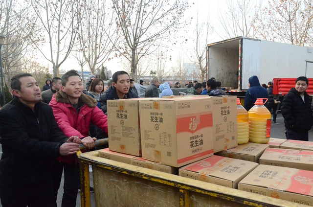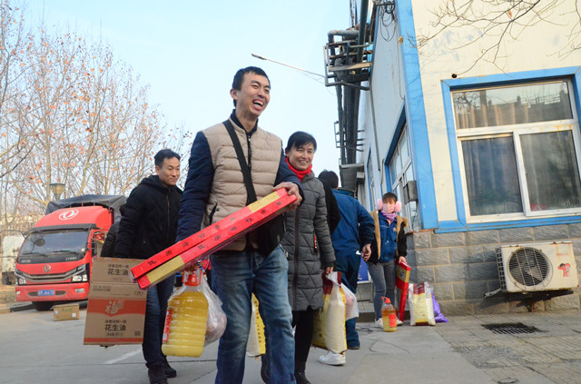 1月21日,公司主廠區(qū)廣場上再現(xiàn)熱烈氣氛,員工們以部門為單位,在這里領(lǐng)取公司為在崗員工和退休職工準(zhǔn)備的豬肉、花生油、大米等“年貨”,以體現(xiàn)對廣大員工建設(shè)企業(yè)、奉獻(xiàn)事業(yè)的慰問之情。