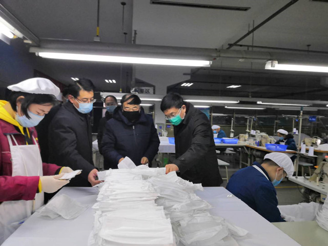 在公司口罩生產(chǎn)現(xiàn)場(chǎng),公司黨委書記、董事長(zhǎng)王力民詳細(xì)介紹了公司在疫情防控方面所做的工作,以及當(dāng)前民用口罩生產(chǎn)產(chǎn)能和新增產(chǎn)能項(xiàng)目推進(jìn)情況,同時(shí)對(duì)公司其他板塊的復(fù)工復(fù)產(chǎn)準(zhǔn)備工作做了說明。現(xiàn)場(chǎng)了解情況后,佘春明對(duì)公司節(jié)日期間組織部分員工提前復(fù)工生產(chǎn)口罩,積極踐行企業(yè)理念和社會(huì)責(zé)任,助力新型冠狀病毒疫情防控阻擊戰(zhàn),給予了充分肯定。他表示,口罩作為防護(hù)必需品,是各行業(yè)返崗復(fù)工的重要保障;企業(yè)要借力金融杠桿,加快項(xiàng)目立項(xiàng)和設(shè)備引進(jìn)進(jìn)度,千方百計(jì)改善生產(chǎn)條件,盡快提高生產(chǎn)供應(yīng)能力。