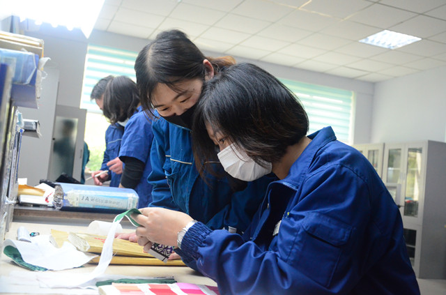 今年36歲的郭萍萍于2005年7月進入公司,一直在生產一線主要從事染整專業技術工作。她在十五年的專業技術工作中,勤奮進取,躬耕奉獻,從一名普通的技術人員成長為公司范圍內成績突出的突出貢獻人才;特別是2015年擔任化驗室主管以來,她帶領團隊精誠協作,打造出良好的團隊文化,面二車間化驗室、花布車間化驗室先后成為公司技術序列的骨干團隊。近年來,郭萍萍先后主導和參與完成了滌棉和純棉品種耐久性三防加免燙整理的開發及應用、紫色乙烯砜染料印花顯色前后差布面花等一系列技術創新和CQI改進項目。可以說,郭萍萍用“十年磨一劍”的精神印證著內心的責任與擔當。