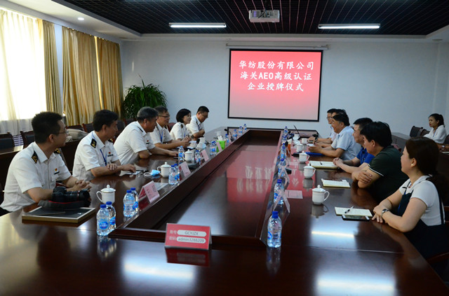 濟南海關AEO評審專家組此前對公司進行了海關高級認證評審工作,主要對公司內部控制、財務狀況、守法規范、貿易安全等四大領域的制度資料進行詳細地審核,涉及進出口儲運、人力資源、財務、信息中心、供應鏈體系、質量部、安保等多個部門的工作內容。現場通過詢問的方式,對以上相關部門的工作進行具體了解核實,并到現場進行實地考察。經過嚴格評審,濟南海關對公司各項工作給予了充分肯定和高度贊揚,認為華紡將AEO認證標準內容真真實實落實到實際工作中;同時希望公司進一步實現整體提升,不斷增強企業的綜合競爭優勢。評審專家組現場宣布,華紡股份有限公司通過AEO海關高級認證。
