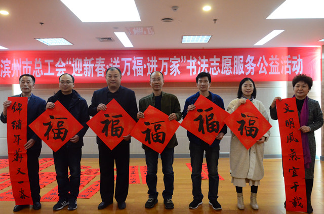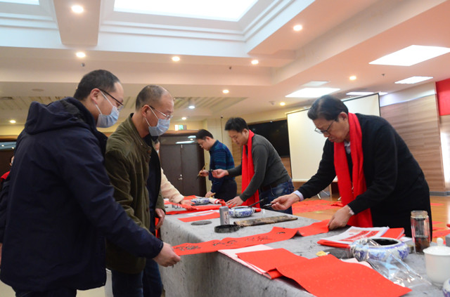 1月29日,市總工會在市職工活動中心舉行“迎新春 送萬福 進萬家”書法志愿服務公益活動舉,邀請到市書法家協會的5位書法家現場書寫春聯、福字。公司勞模代表和職工代表與渤?;钊⒔贿\集團的代表一道,參加此次活動。