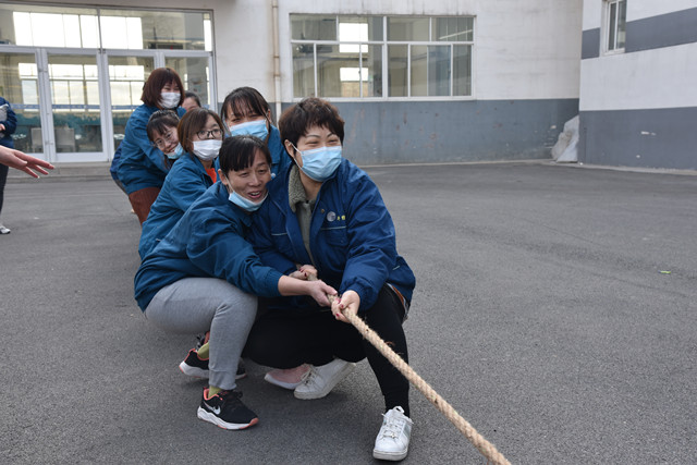 3月4日,春光明媚,清風拂面。在公司工業(yè)園區(qū)職工食堂廣場上,氣氛異常熱烈;隨著女工拔河比賽開始的哨聲響起,比賽場上的隊員們鉚足了勁兒往后拉,場上助威加油的啦啦隊加油聲不停。