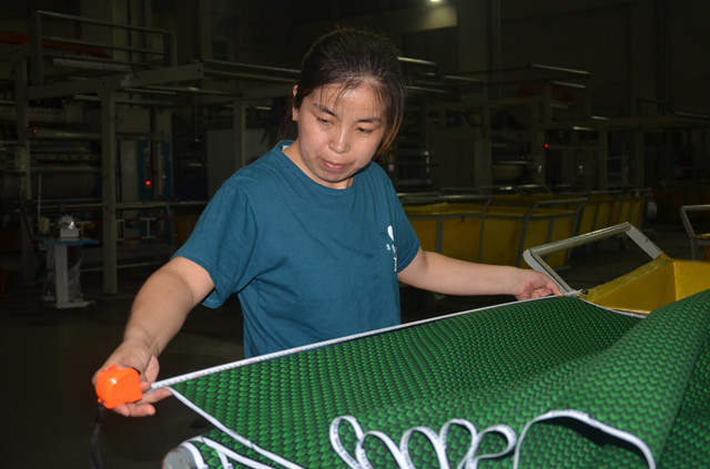 8月17日,公司花布車間后處理工段甲班拉幅機出檢工劉衛上夜班。工作中,她絲毫不敢懈怠,一會兒拉過落進布車內的花布面料查看,一會兒把摞高的布用力按下去,一會兒又拿起卷尺去量幅寬。劉衛說:“持續不斷的精益生產培訓,使我們意識到:只有穩定的質量,企業才能被市場所接受。因此,我們每一個班都力爭在產品質量上做到100%。”
