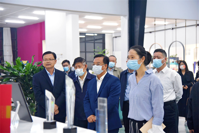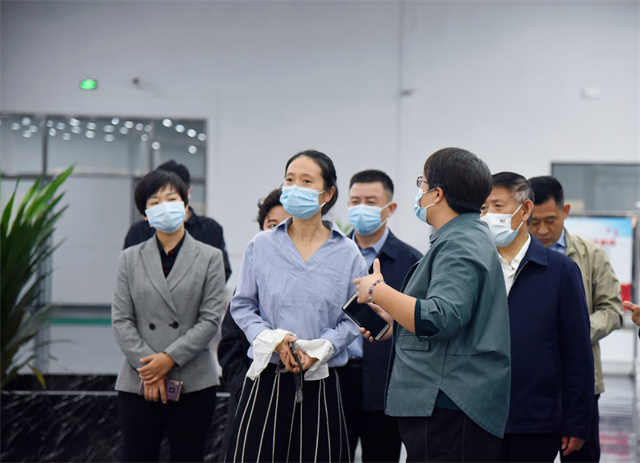 楊菡一行首先參觀了公司智云中心、服裝面料公司、花布公司、家紡公司、創(chuàng)意中心、工程技術研究院等,盛守祥向楊菡一行介紹了公司整體發(fā)展、智能制造、轉型升級等情況。
