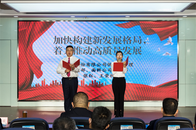 公司供應(yīng)鏈管理黨支部、面料公司黨支部代表張紅、王榮梓誦讀《加快構(gòu)建新發(fā)展格局 著力推動(dòng)高質(zhì)量發(fā)展》。堅(jiān)持實(shí)事求是,融入高質(zhì)量發(fā)展大局;堅(jiān)持守正創(chuàng)新,拓寬高質(zhì)量發(fā)展路徑;堅(jiān)持行穩(wěn)致遠(yuǎn),提升高質(zhì)量發(fā)展能力。華紡股份將以高質(zhì)量發(fā)展為目標(biāo),引領(lǐng)企業(yè)向更高水平闊步邁進(jìn)。