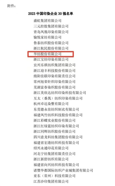 導讀:近日,中國印染行業協會下發了《關于公布2023年中國印染企業30強的通知》,