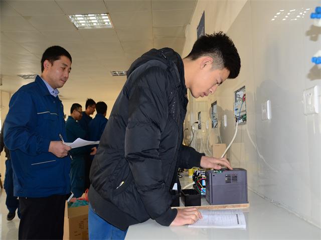 日前,公司在基層開展機電技術人員技能比武基礎上,在公司255名機電技術人員中集中展開了技能大比武活動。這次比武分為機械技能實踐和電氣技能實踐兩個部分,機械技能實踐有“導布輥焊補軸頭”、“減速器拆裝配”、“管道焊接”三項內(nèi)容;電氣技能實踐有“PLC程序初級操作”、“變頻器裝配操作”兩項內(nèi)容。公司組織的這次技能比武,也是機電序列技術人員全年考評、考核內(nèi)容之一。