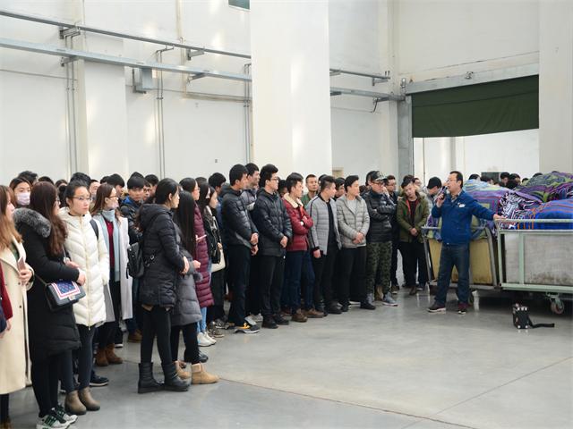 2月22日,濱州學(xué)院藝術(shù)學(xué)院黨總支副書記牛愛之、學(xué)生科科長秦玉國及240余名師生來到公司參觀交流,公司人力資源部、職工學(xué)院、團(tuán)委等負(fù)責(zé)人,帶領(lǐng)師生們一行參觀了公司科技產(chǎn)業(yè)園的花二車間、制版中心、家紡成品車間等,并著重介紹了公司的發(fā)展?fàn)顩r和前景。參觀結(jié)束后,同學(xué)們紛紛表示對公司整潔的工作環(huán)境、智能化的生產(chǎn)現(xiàn)場印象深刻。帶隊老師表示,華紡的發(fā)展令人鼓舞,希望回校后組織有就業(yè)意向的學(xué)生來公司實習(xí)、就業(yè)。