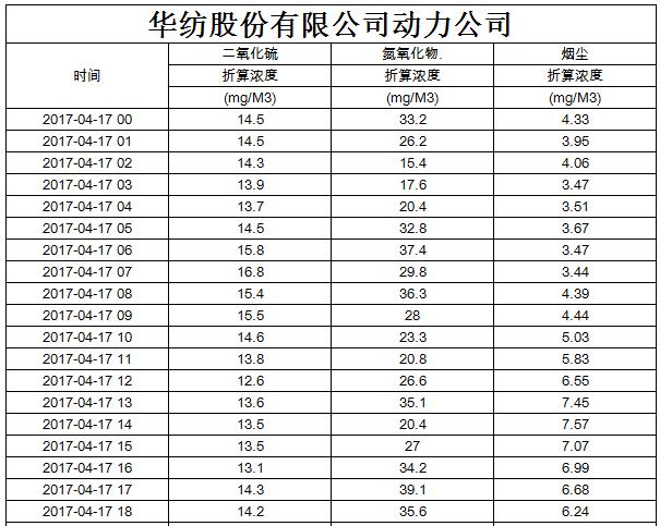 煙氣排放數據信息公開2017.4.17數據