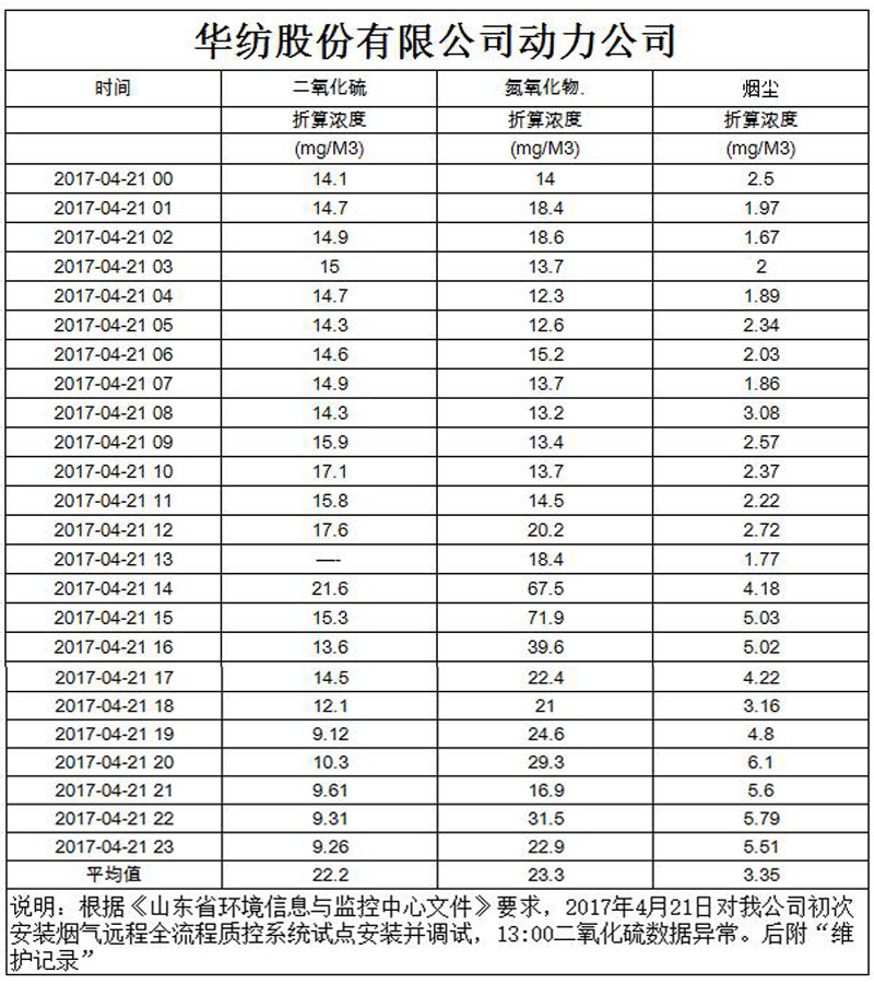 煙氣排放數據信息公開2017.4.21數據