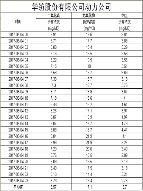 煙氣排放數據信息公開2017.5.4數據
