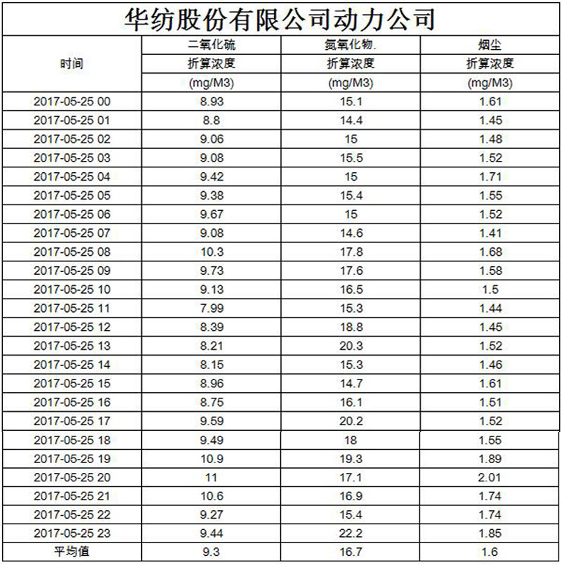 煙氣排放數(shù)據(jù)信息公開2017.5.25數(shù)據(jù)