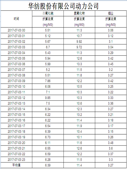 煙氣排放數據信息公開2017.7.4數據