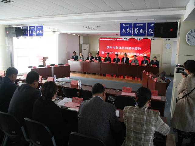 公司是全國(guó)紡織行業(yè)的優(yōu)勢(shì)骨干企業(yè),多年來規(guī)范協(xié)商、認(rèn)真履行《集體合同》,在員工權(quán)益、安全生產(chǎn)及女職工保護(hù)等方面取得了良好成效,集體協(xié)商制度也為員工隊(duì)伍穩(wěn)定、企業(yè)整體發(fā)展提供了有力保障。京博集團(tuán)、渤海活塞等濱州市不同行業(yè)的優(yōu)勢(shì)骨干企業(yè),一同參加了當(dāng)天的集中簽約儀式。圖為當(dāng)天集中簽約儀式現(xiàn)場(chǎng)情形。
